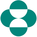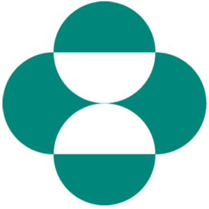 A blue and white logo featuring a cow